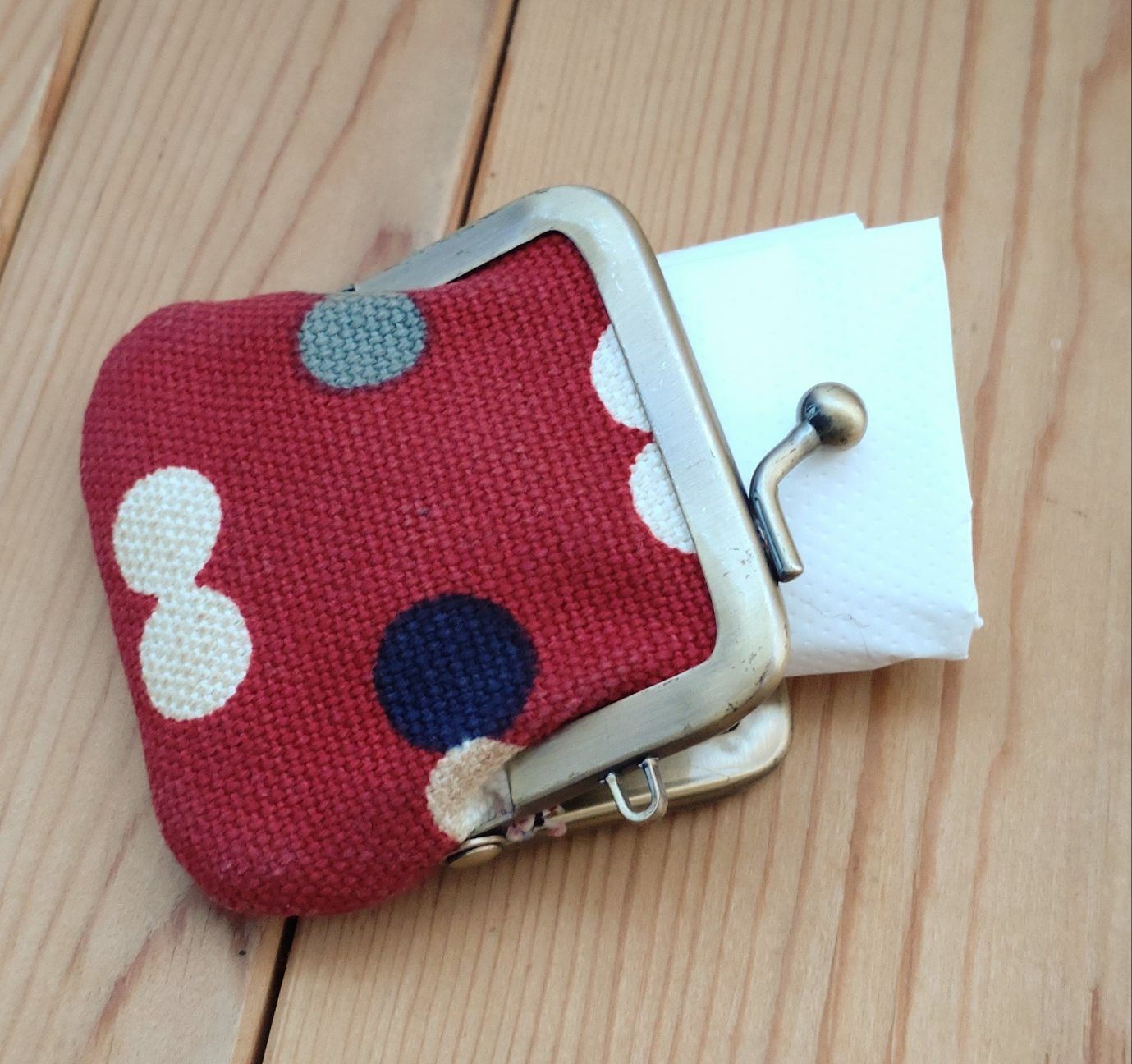 普段はAYANOKOJI(あやの小路)のがま口ストラップに、新品のレジ袋を折りたたんで、いつも持ち歩くポーチの中に放り込んでる。
