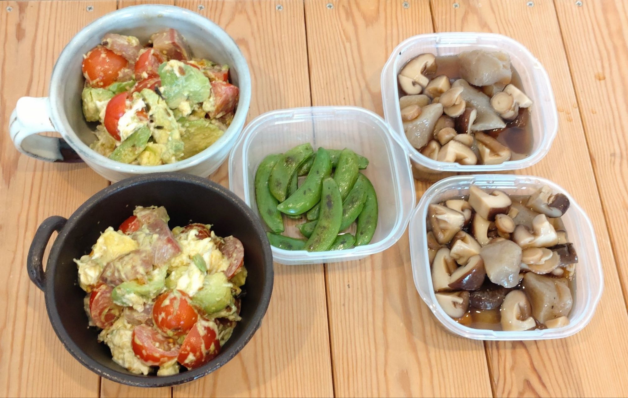 は、ともかくとして、月曜と水曜にすでに約束があるので、まずは土日に右の2タッパ以外はなくす。