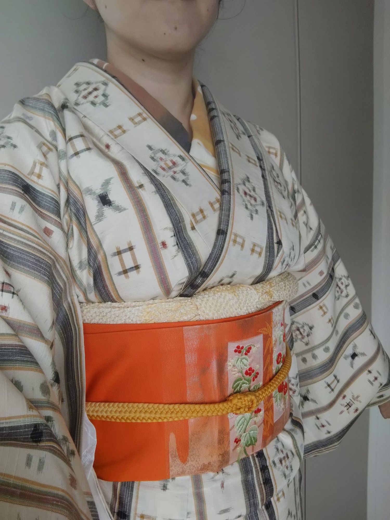 柄出しが難しいな、とワチャワチャしたせいで、帯がダルダルだ。