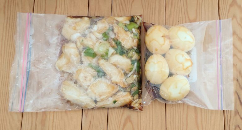 スナップエンドウは焼きめをつけて、フライパンの余白