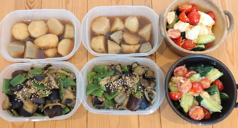 捻り千切ったキュウリ、半分に切ったミニトマト、引き
